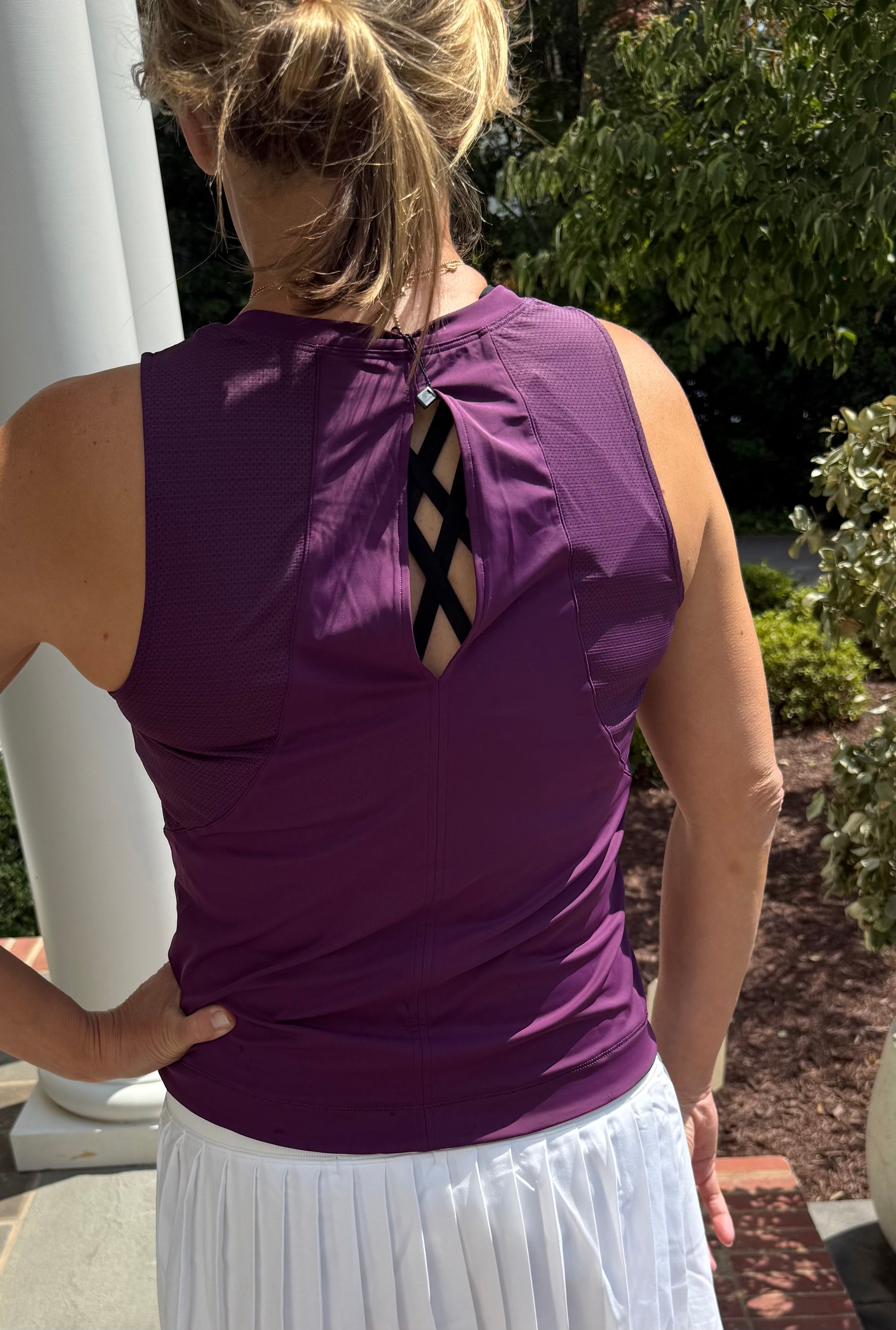 The Keyhole Performance Tank is a full length tank with perforated back insets and a keyhole for ventilation. This tank made in our ultra soft React Nylon is stretchy, moisture wicking, and quick drying while also offering UPF protection.